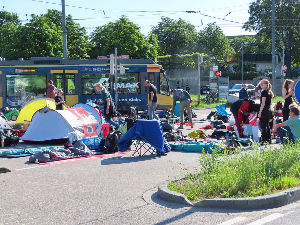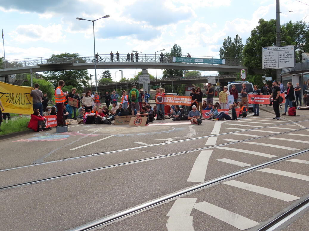 Ungehorsame Versammlung vor dem Heizkraftwerk West in Karlsruhe (Honsellstraße) am 2024-05-25