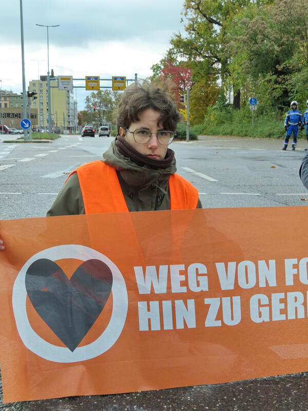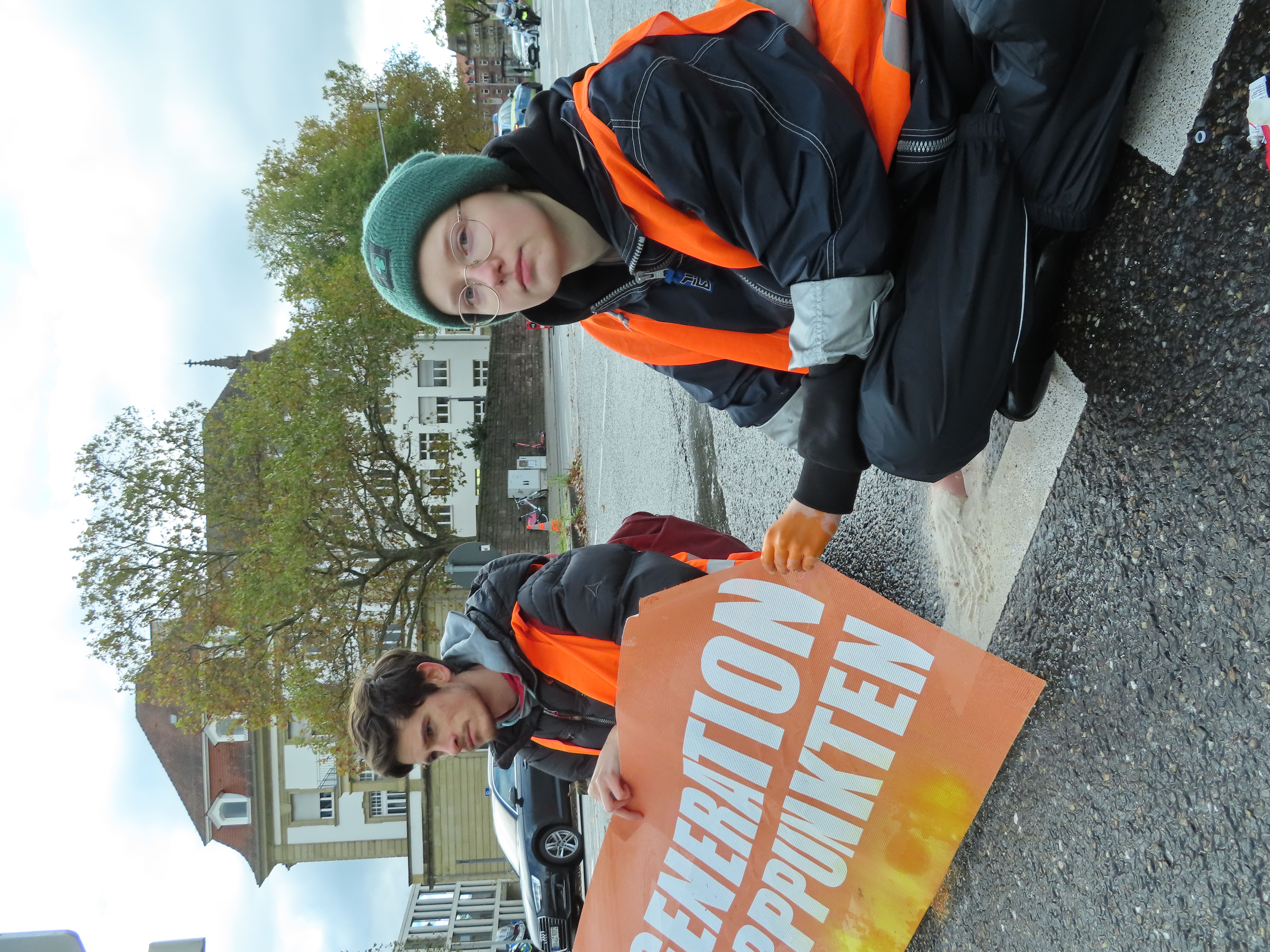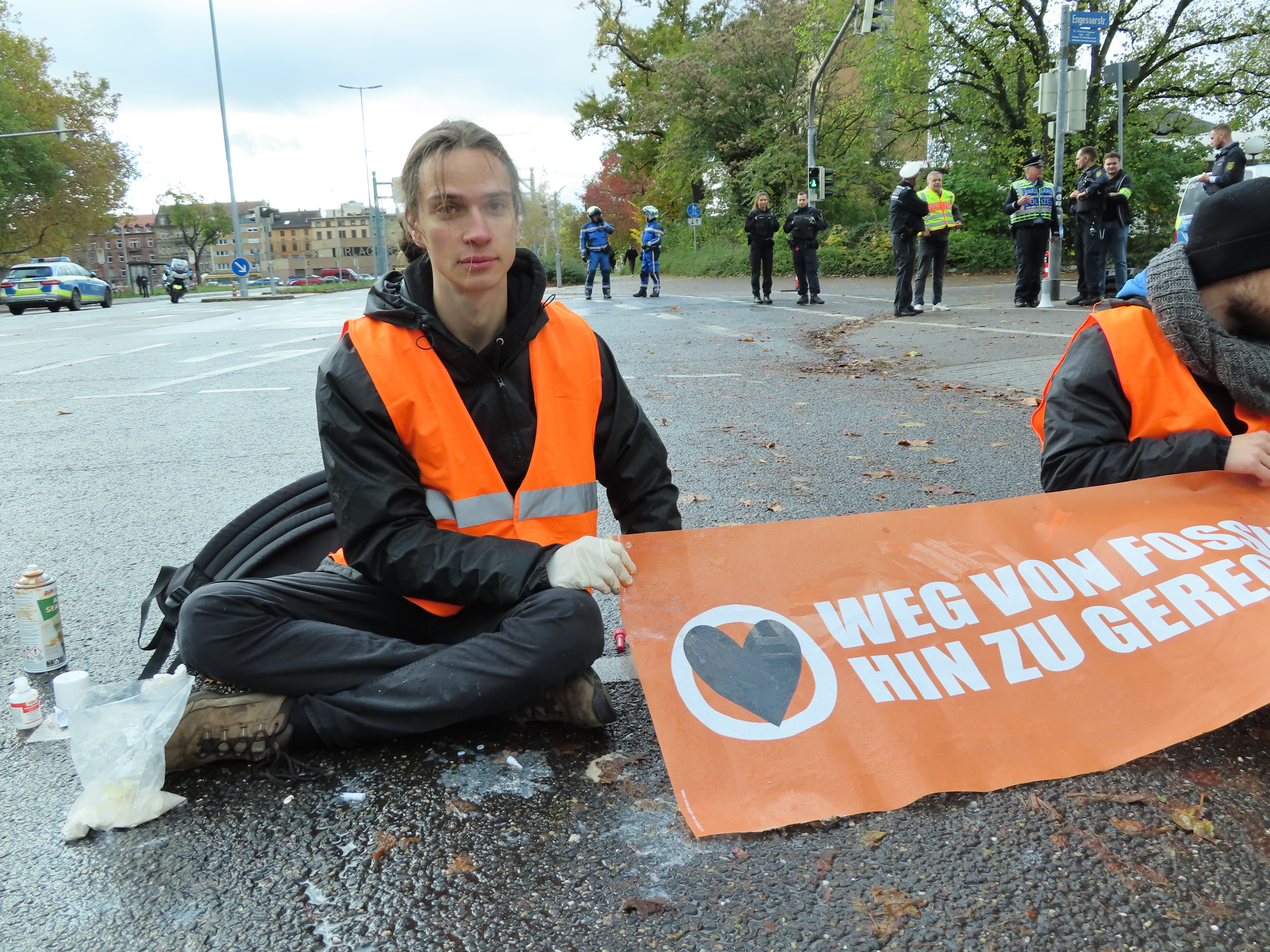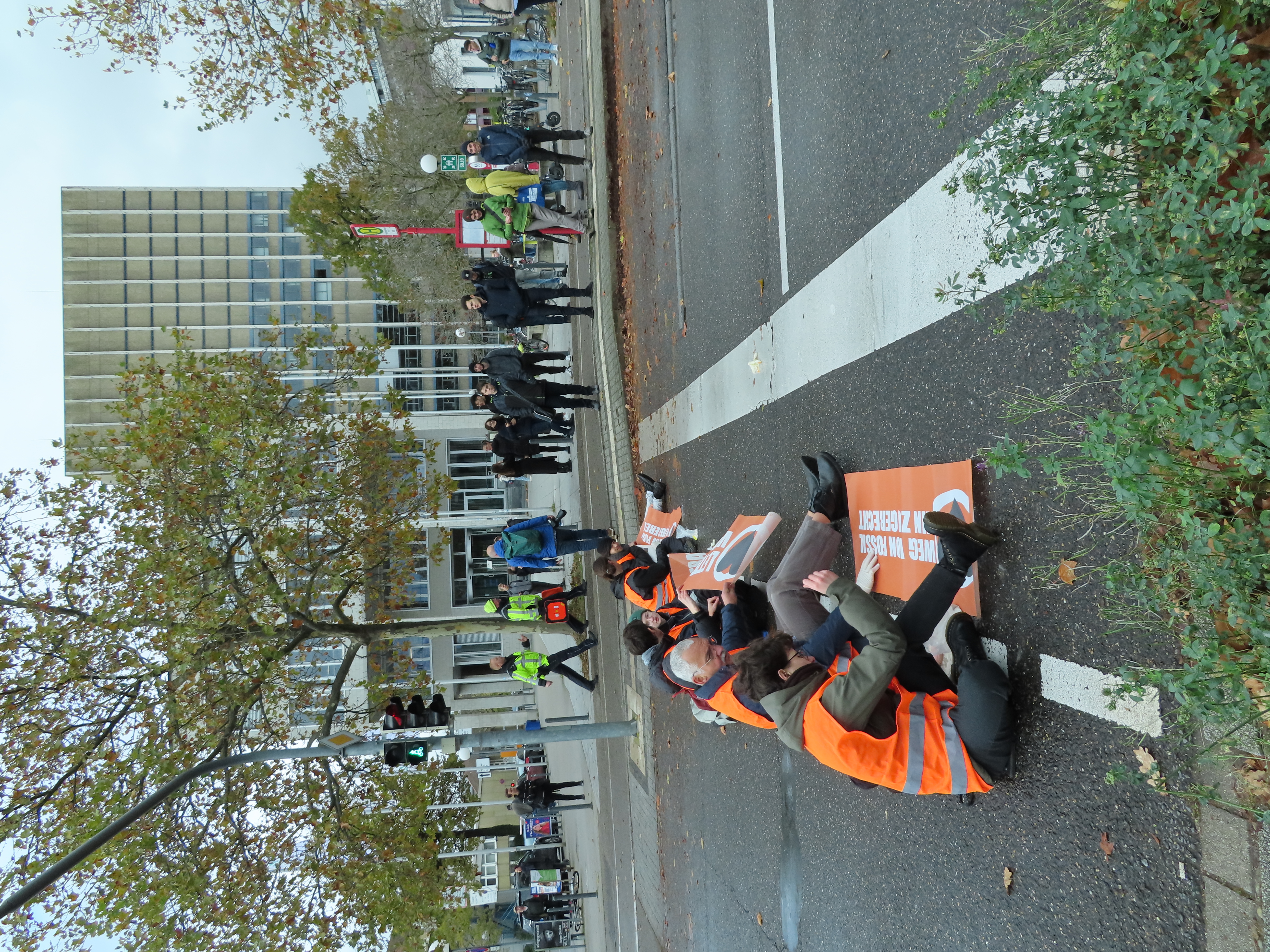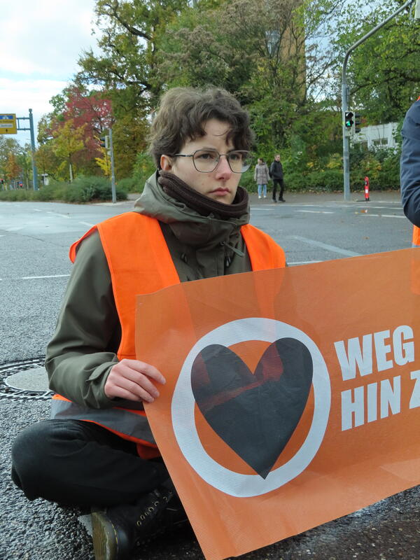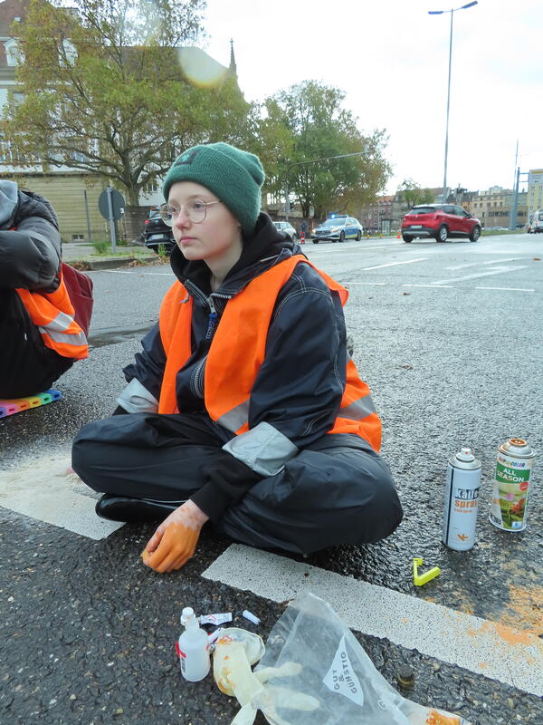 Straßenblockade auf dem Karlsruher Adenauerring, Höhe Studentenhaus, am 2023-11-10