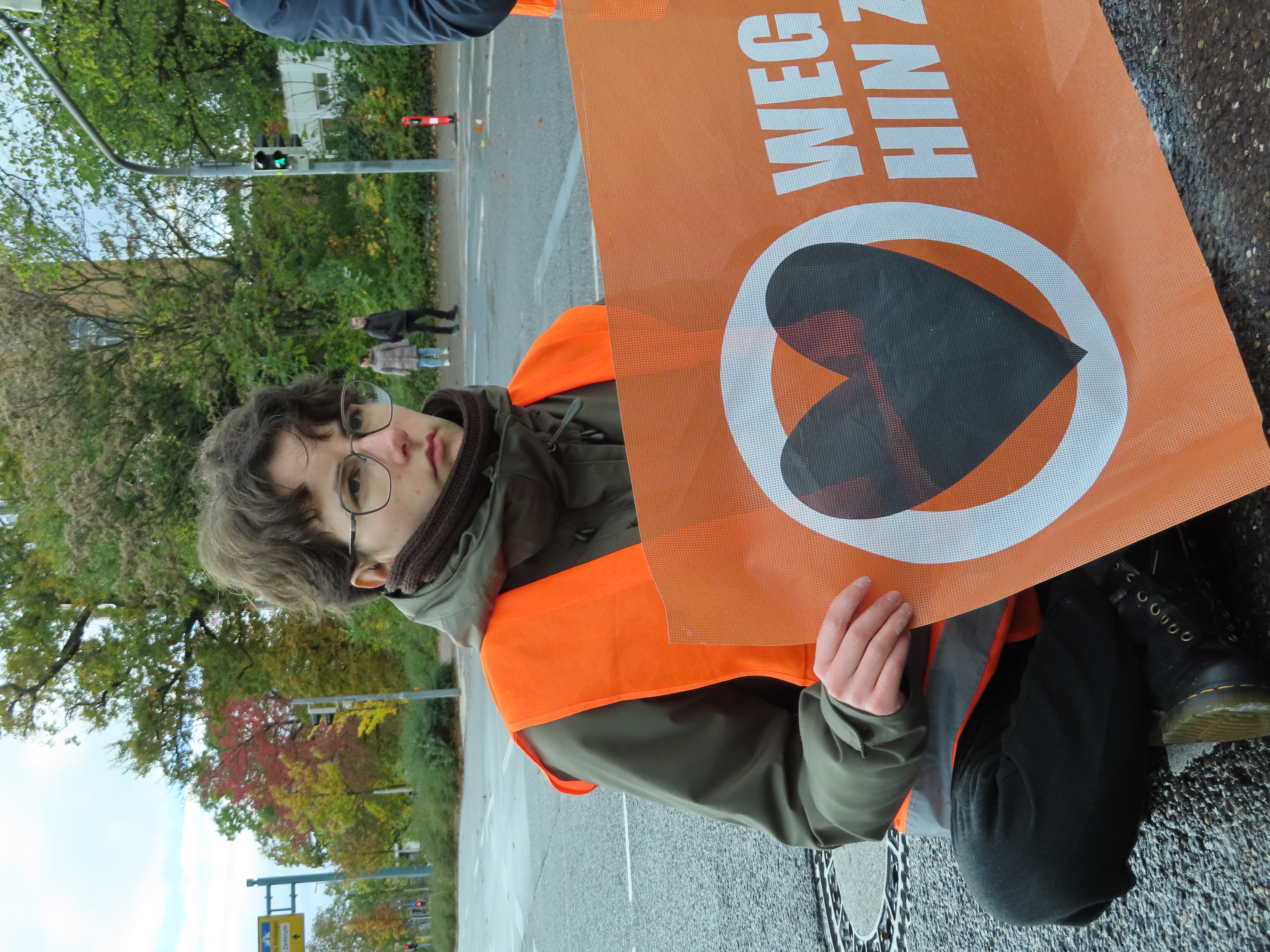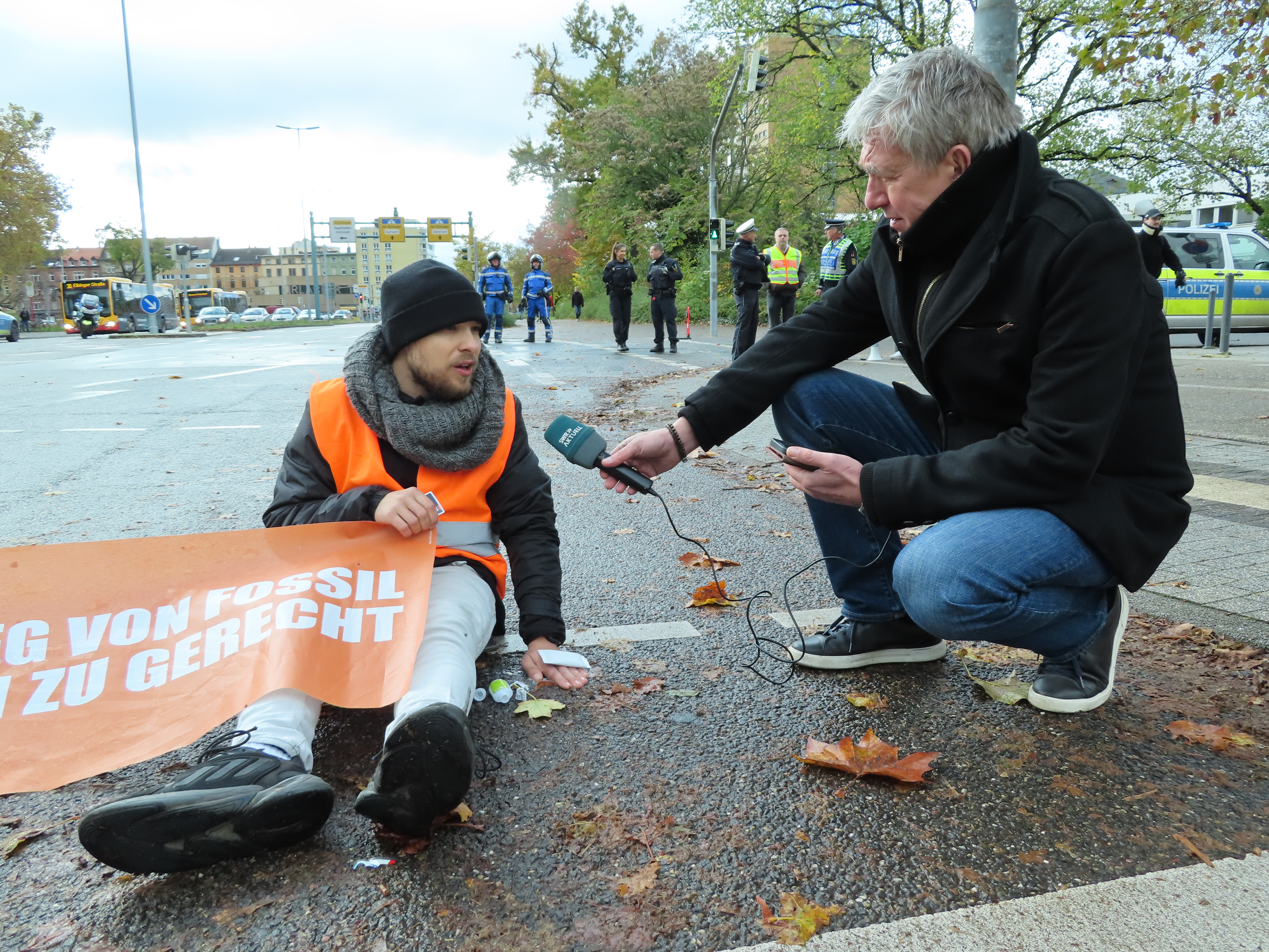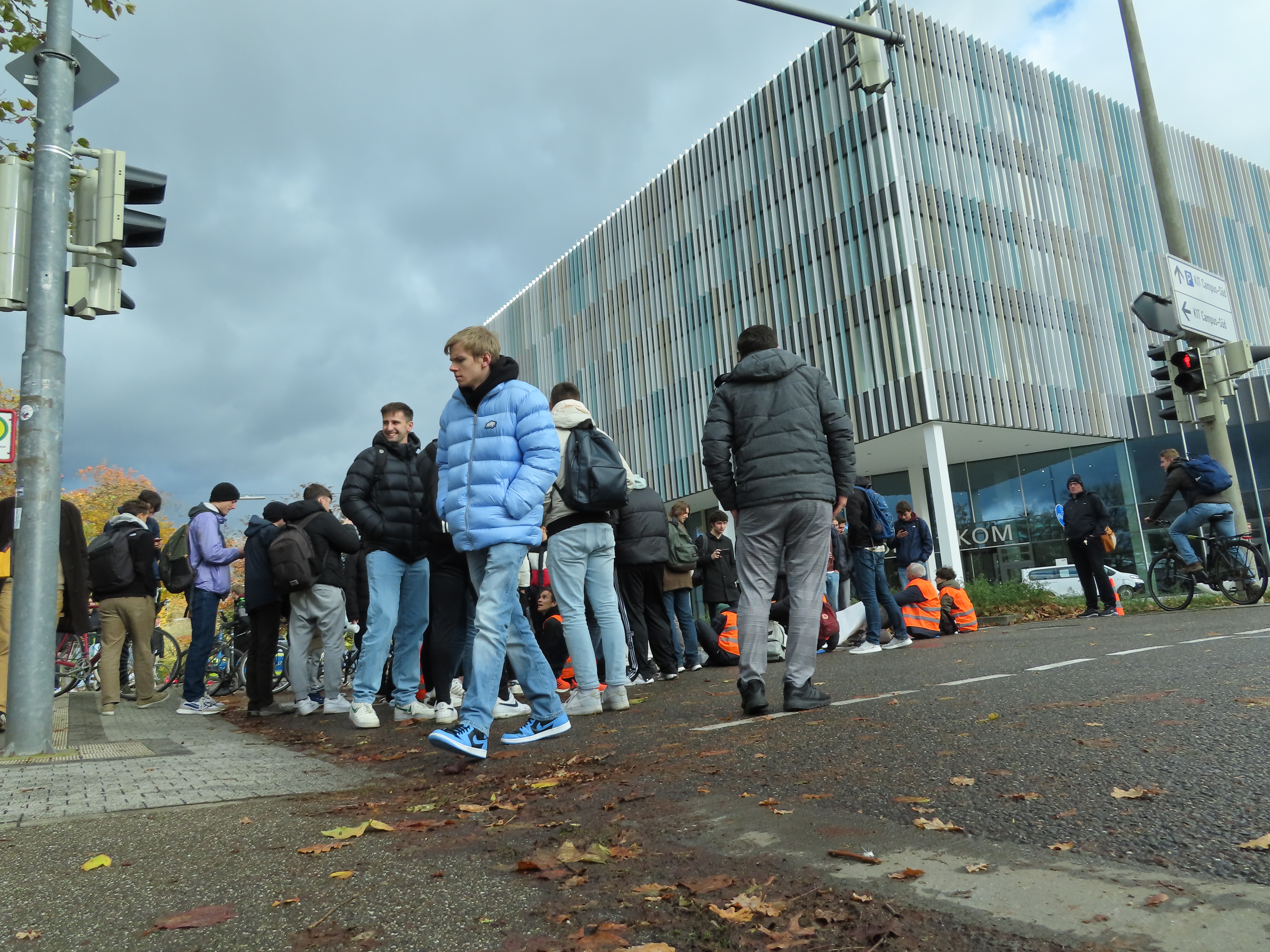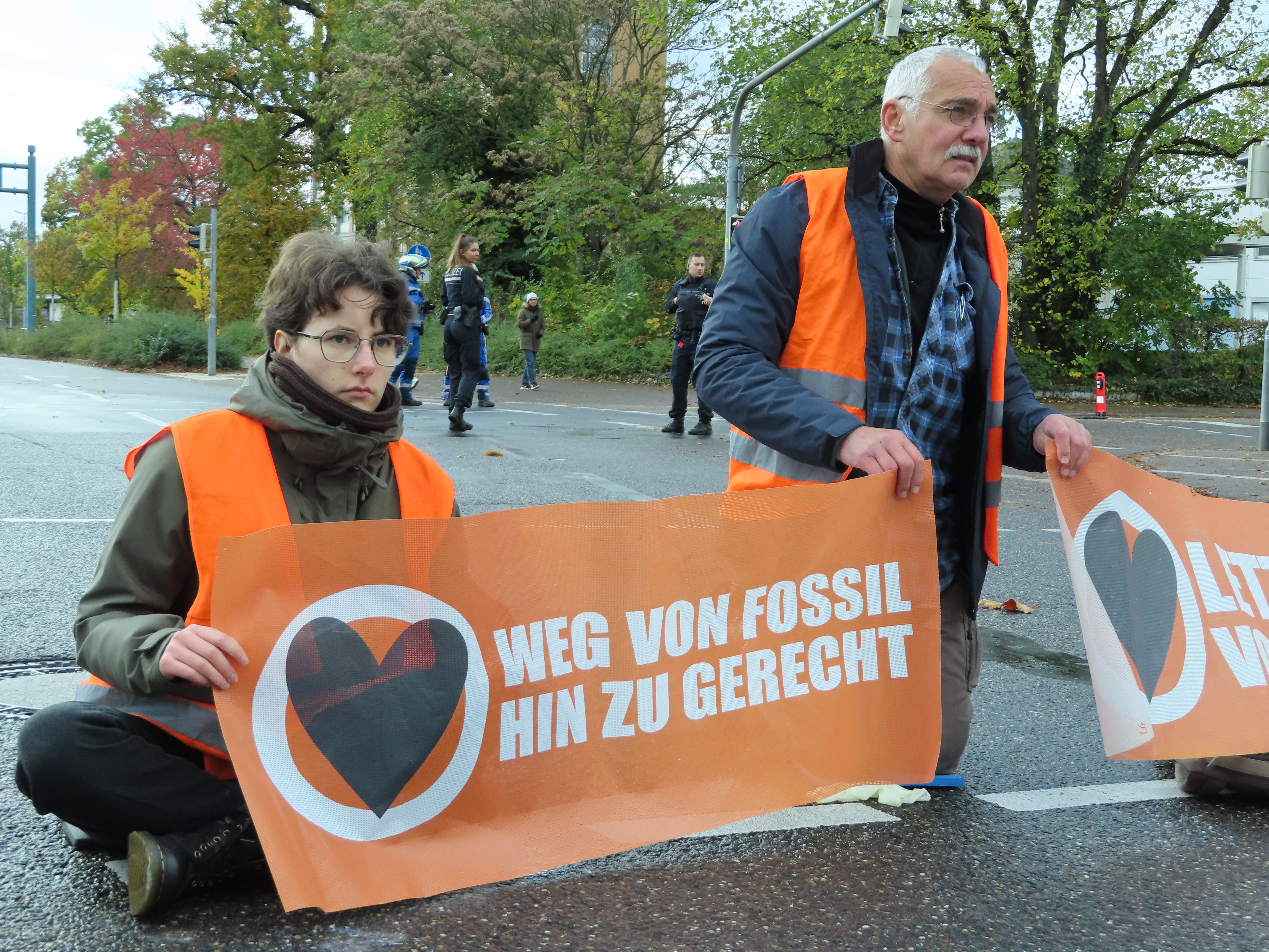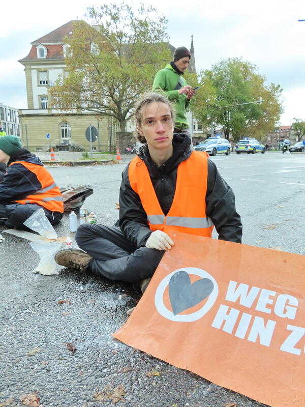 Straßenblockade auf dem Karlsruher Adenauerring, Höhe Studentenhaus, am 2023-11-10