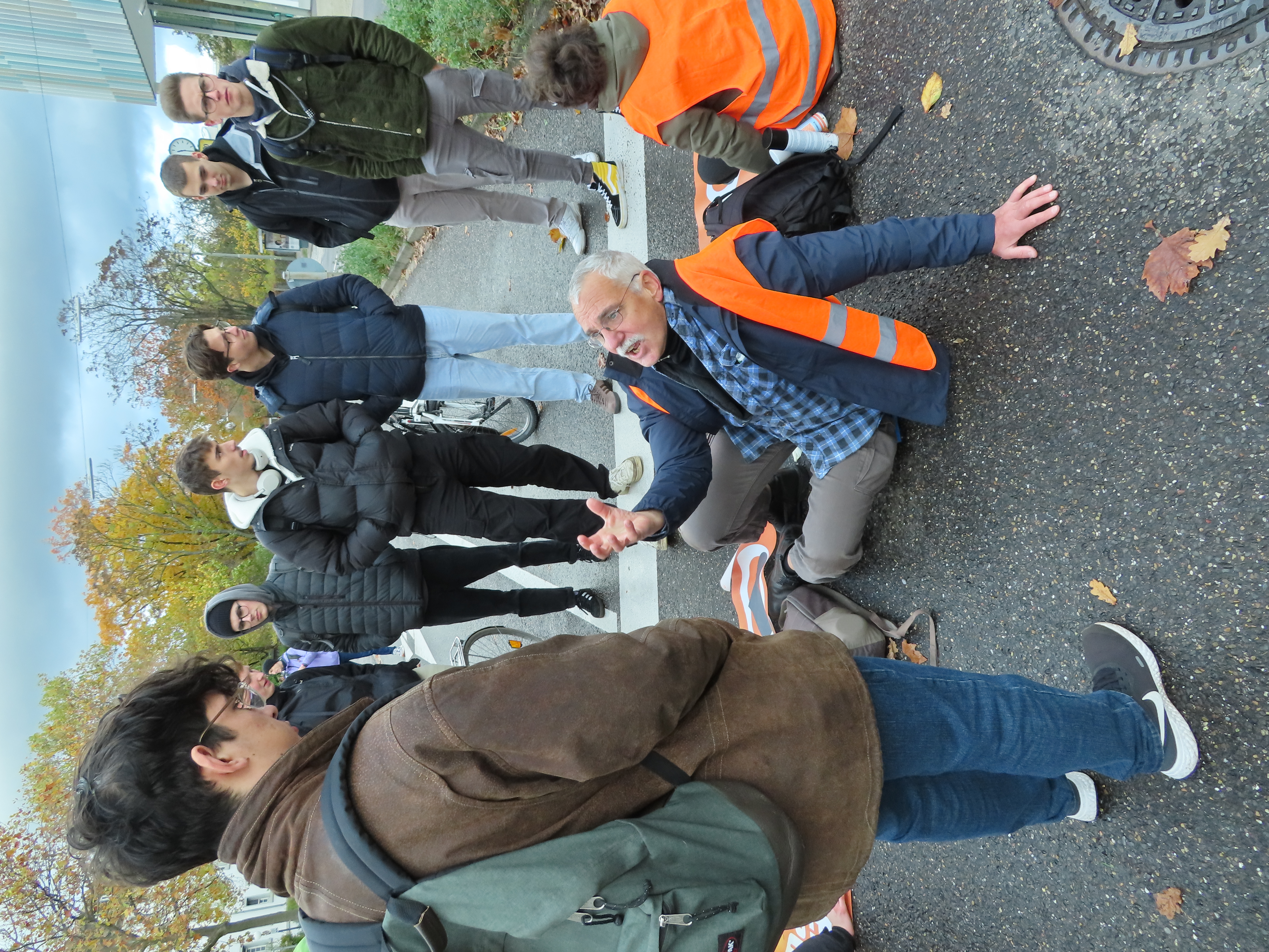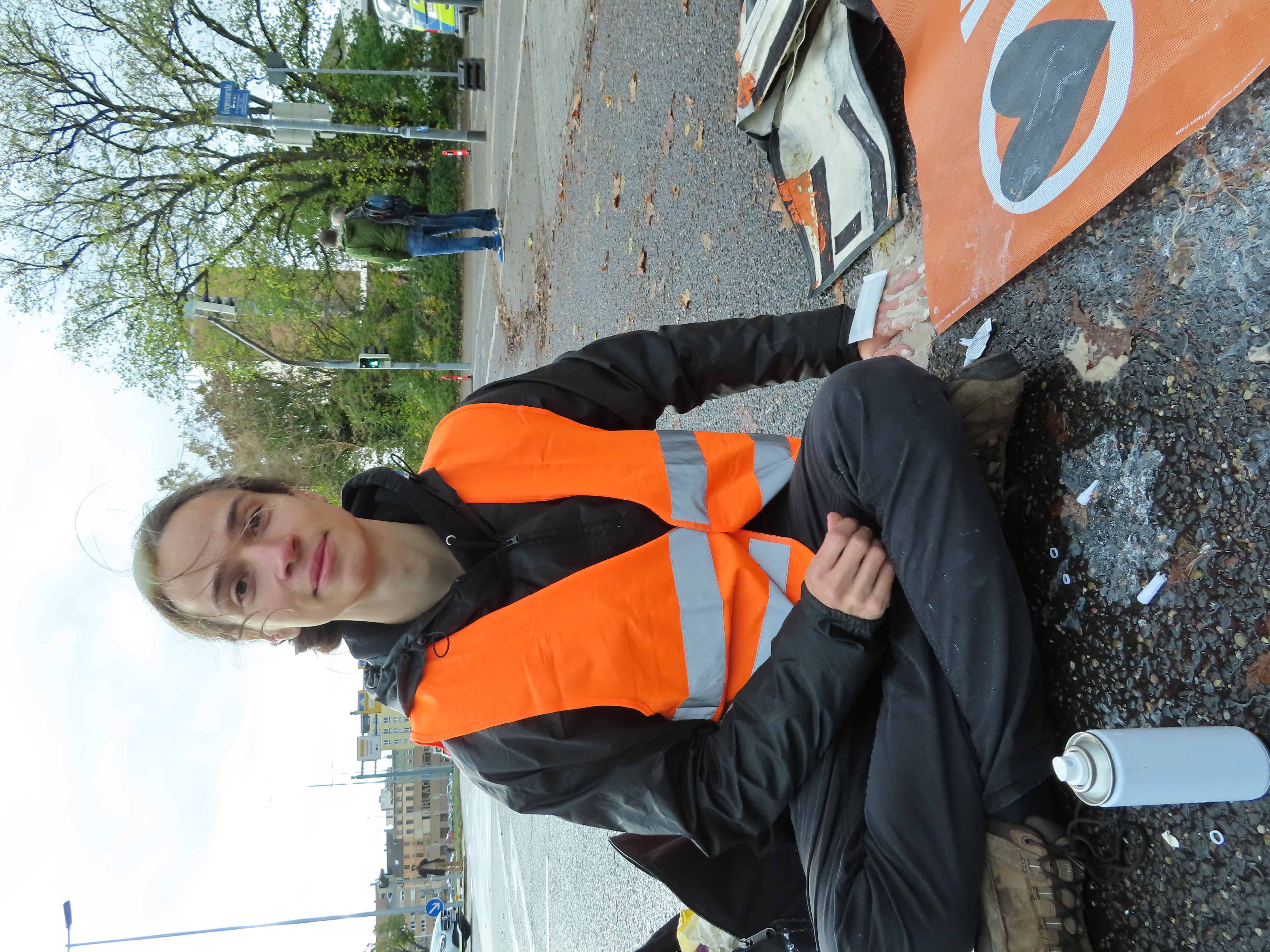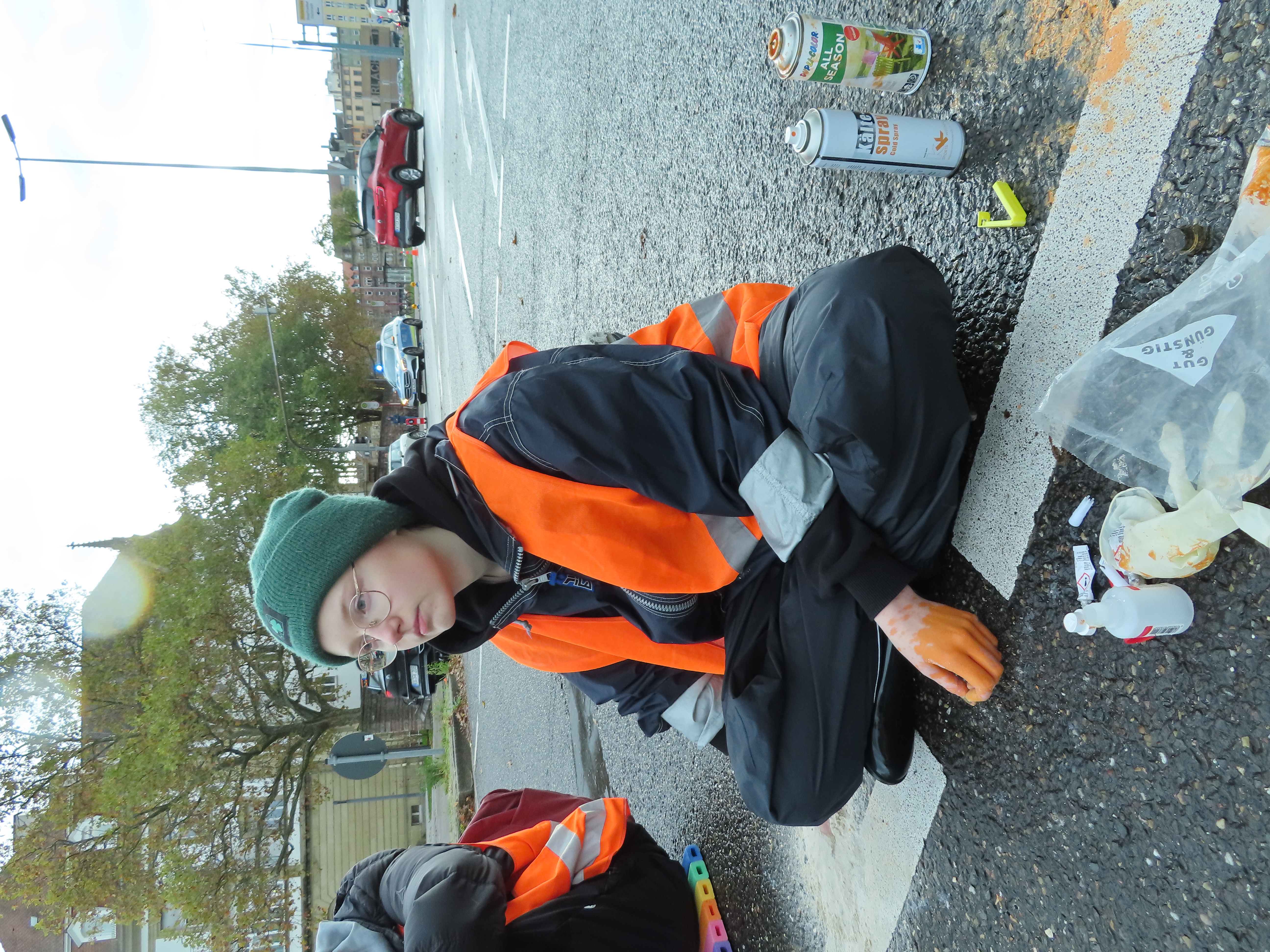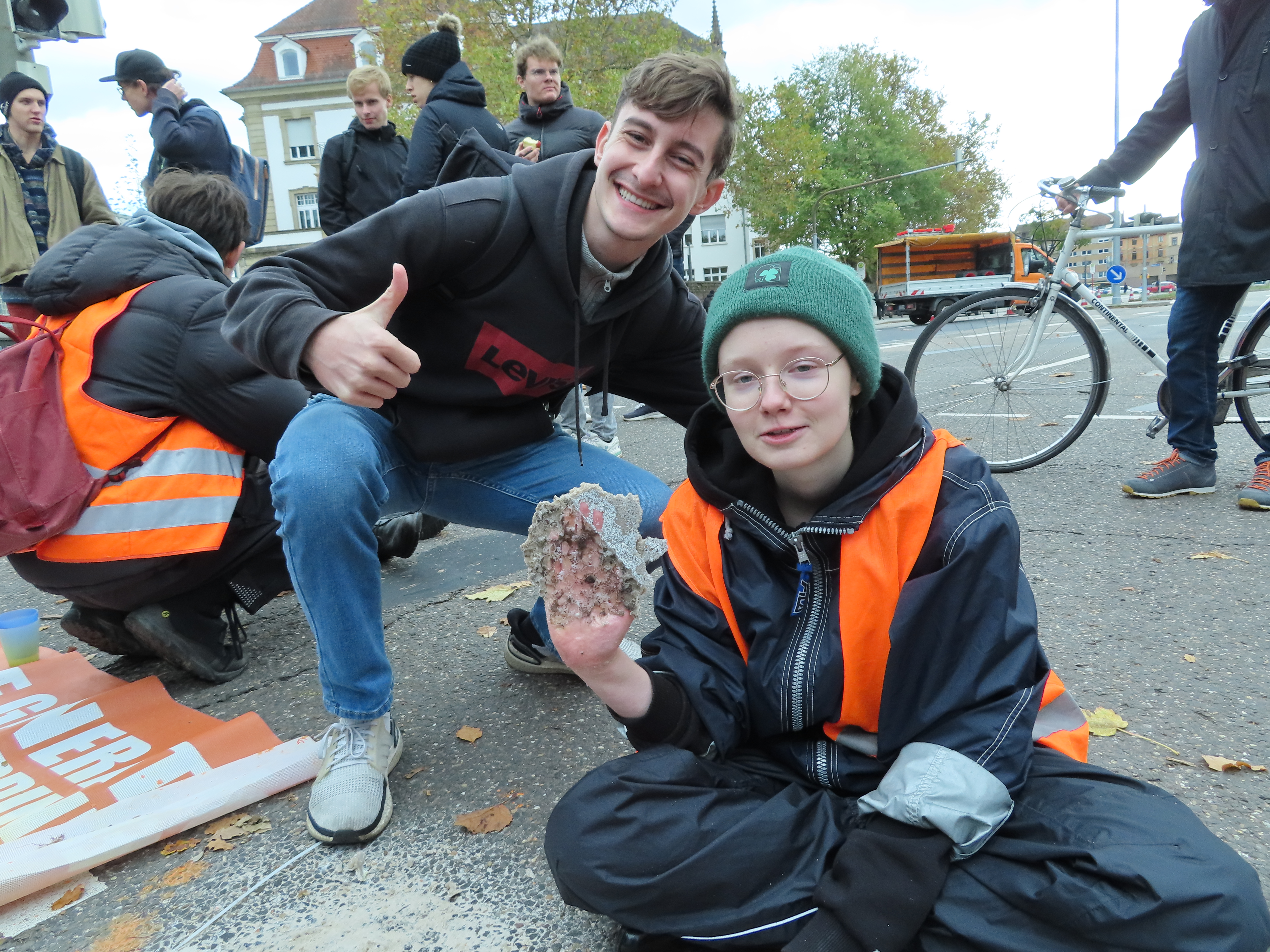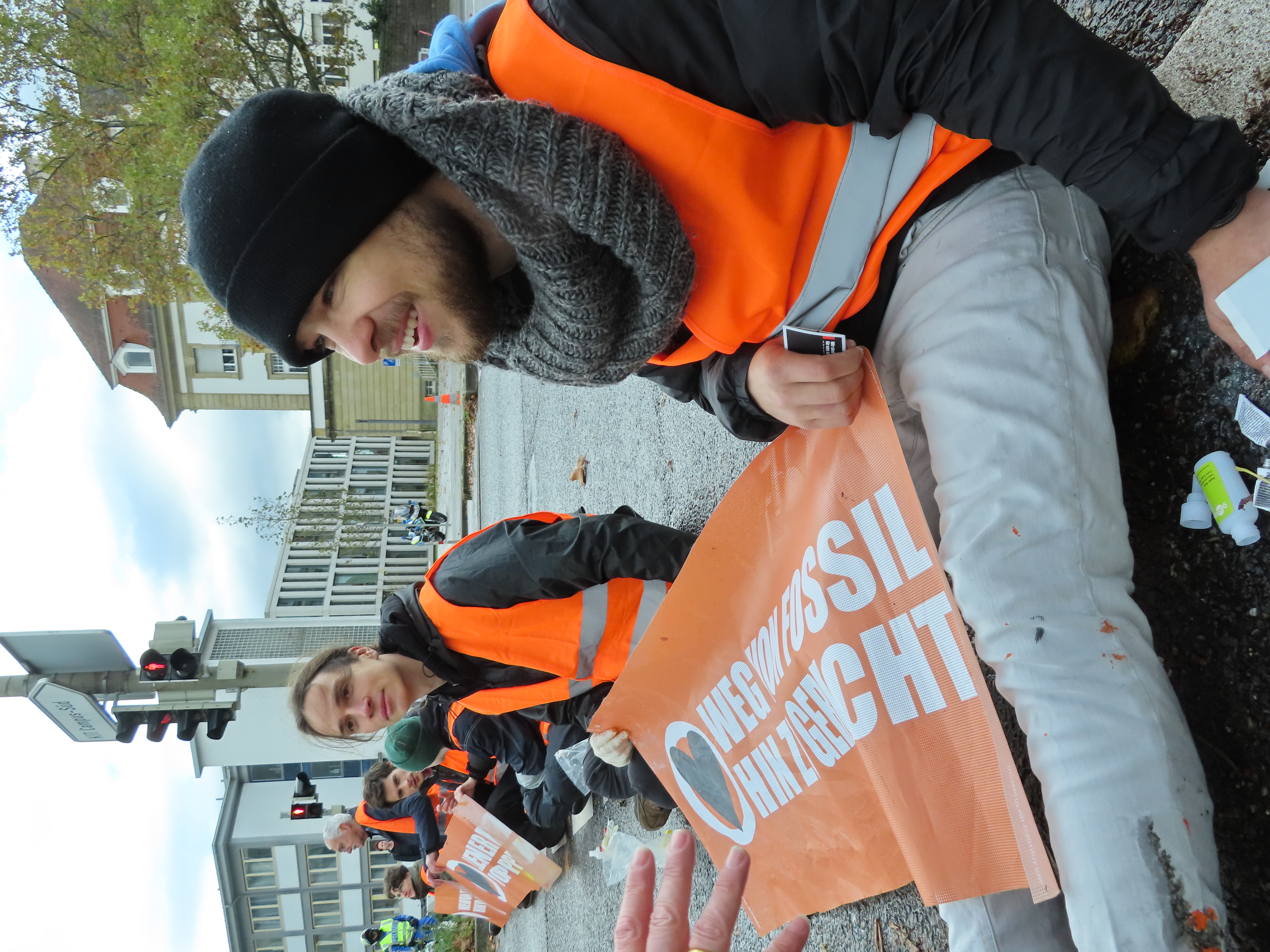 Straßenblockade auf dem Karlsruher Adenauerring, Höhe Studentenhaus, am 2023-11-10