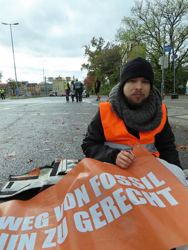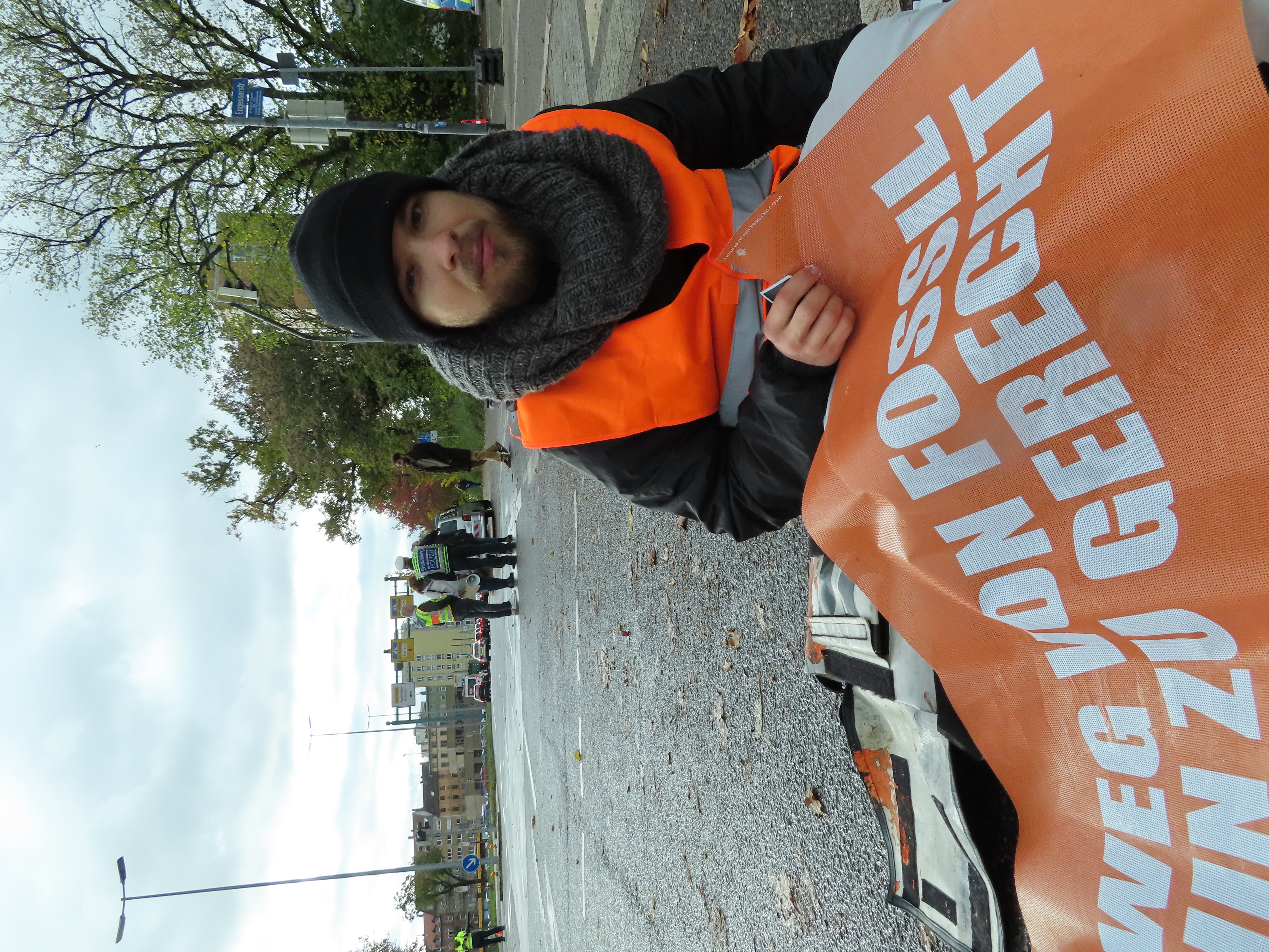 Die Blockade stoppte kurzzeitig den Autoverkehr auf