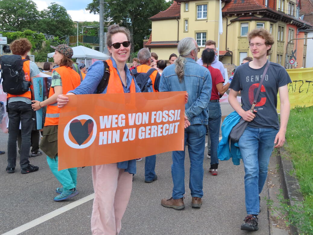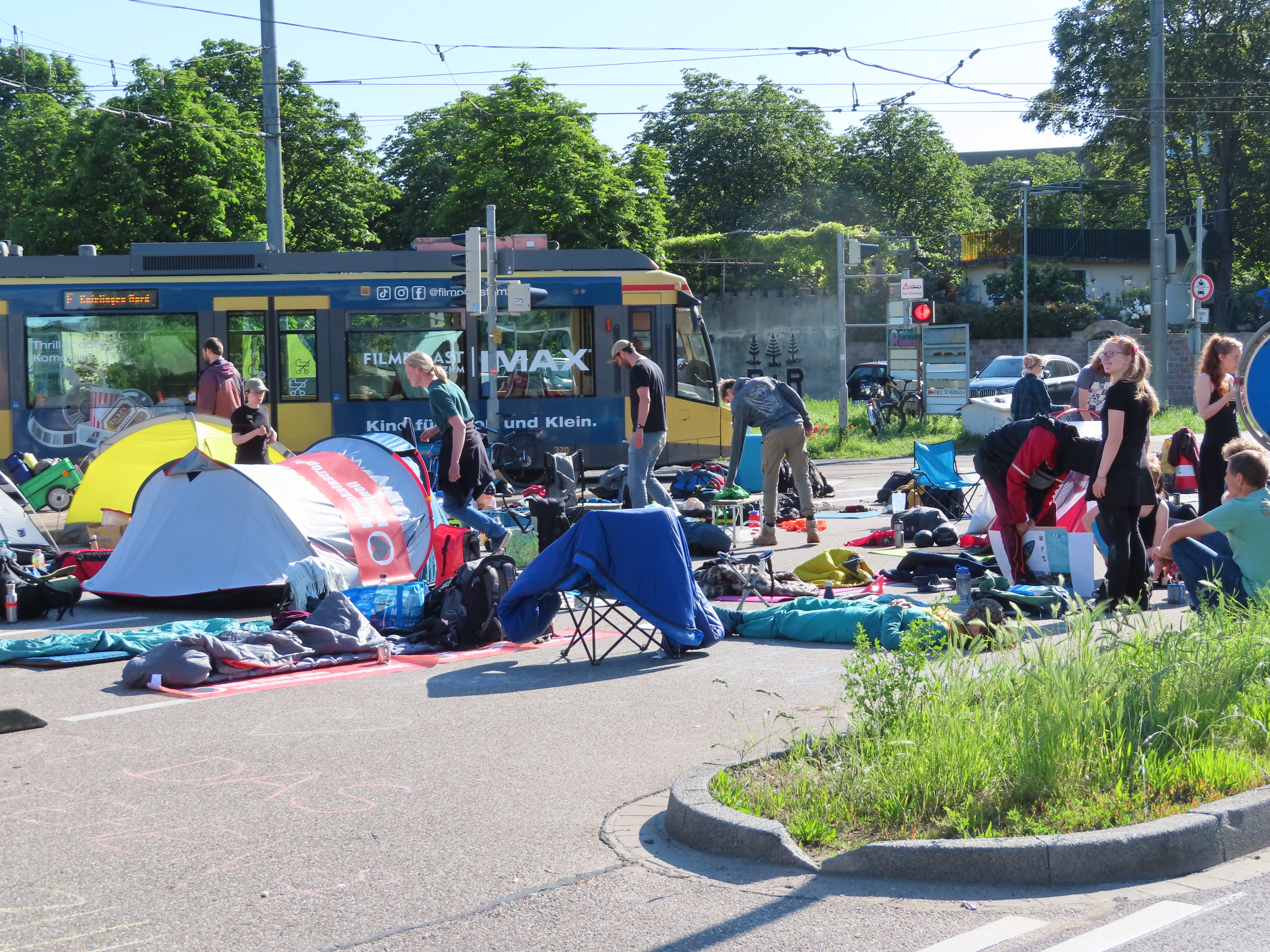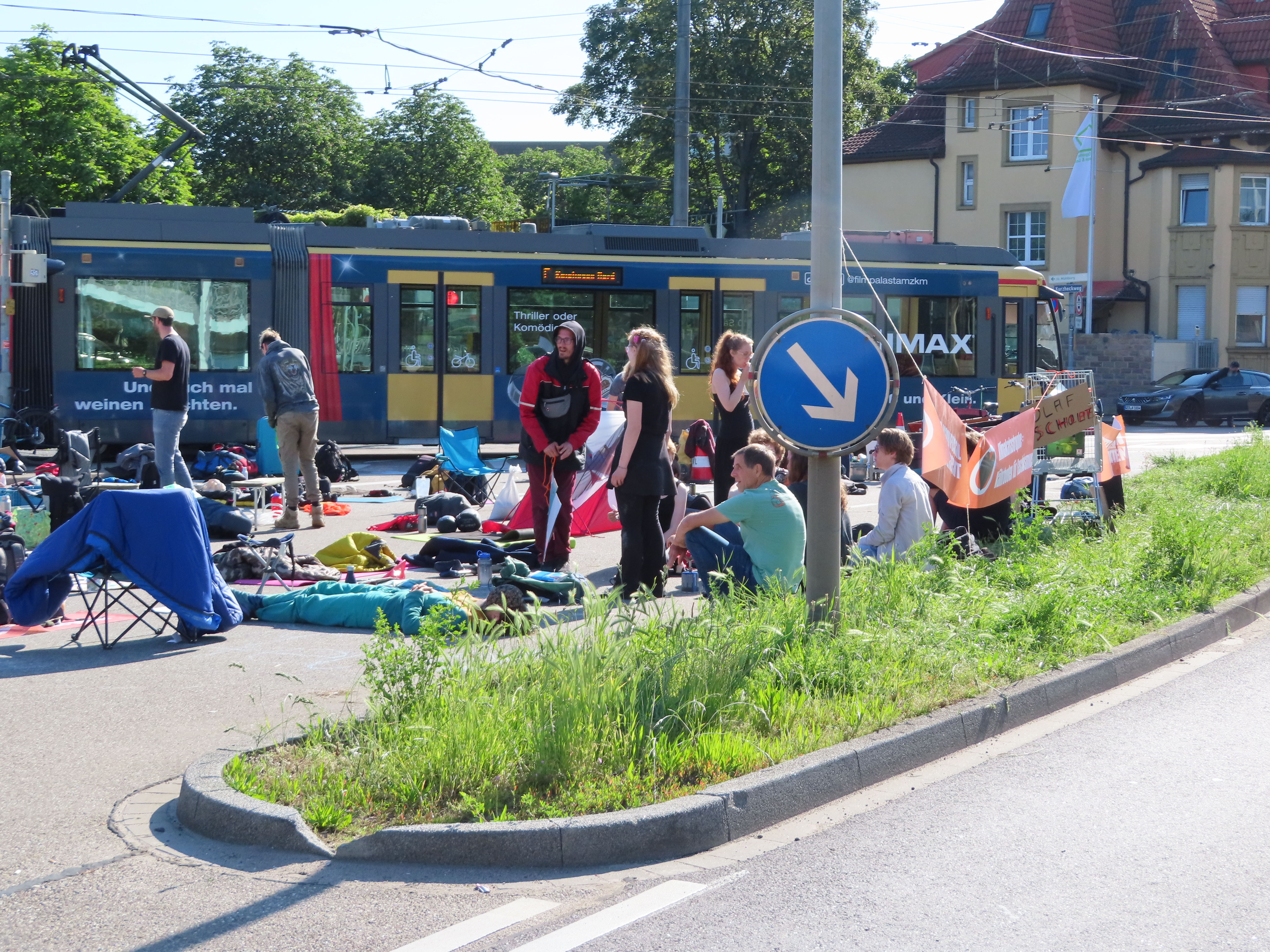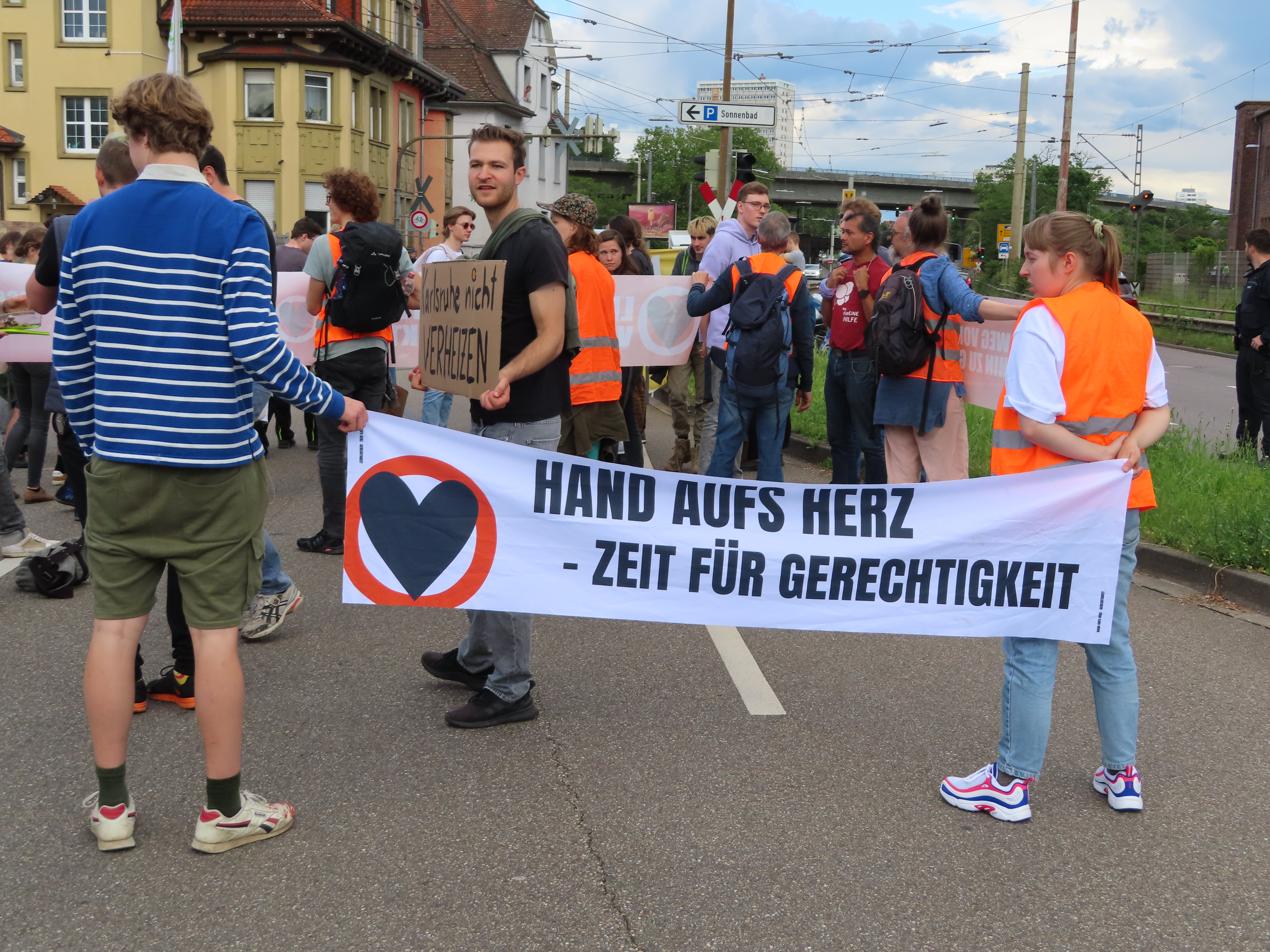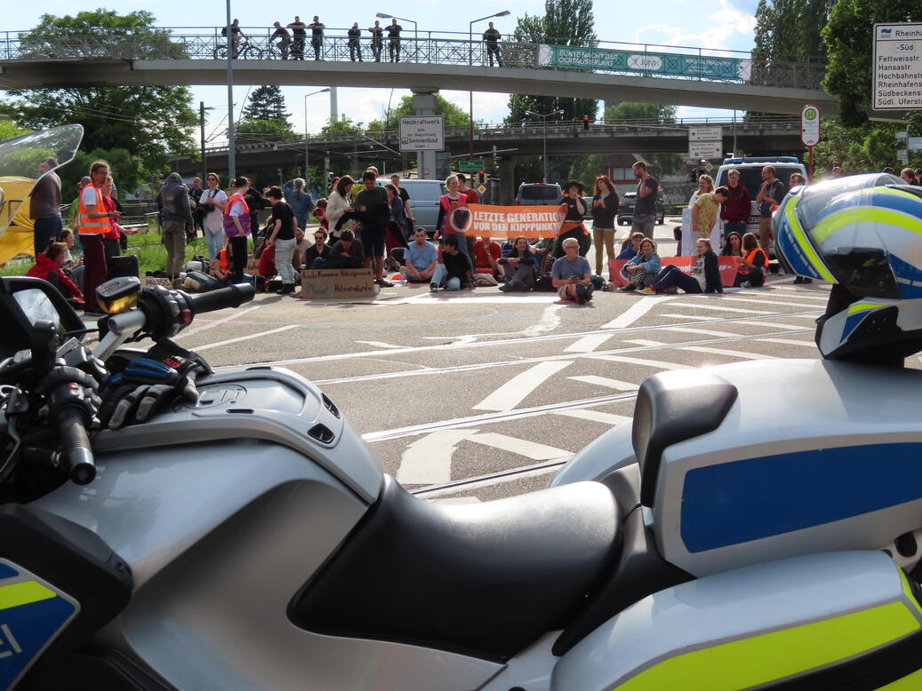 Ungehorsame Versammlung vor dem Heizkraftwerk West in Karlsruhe (Honsellstraße) am 2024-05-25