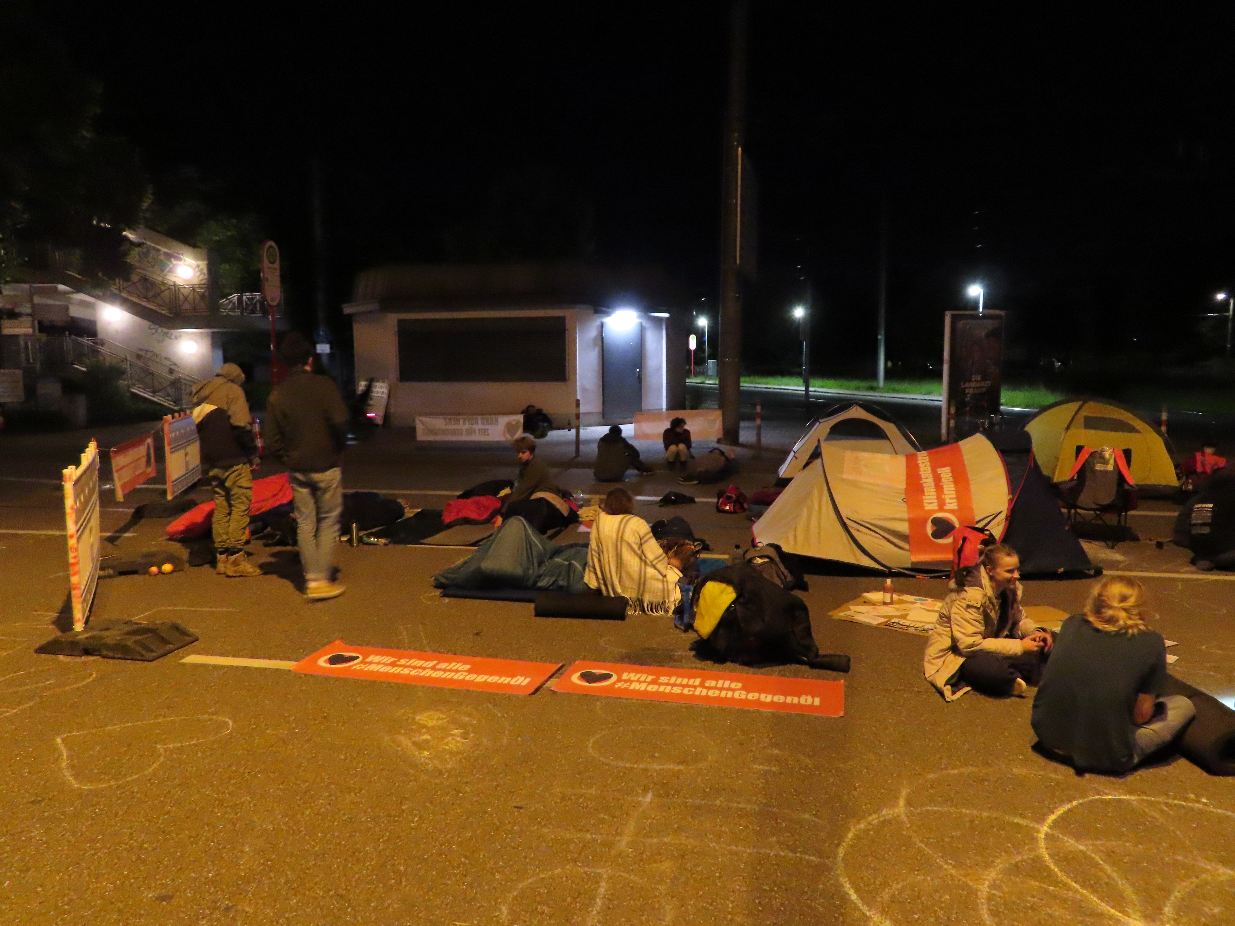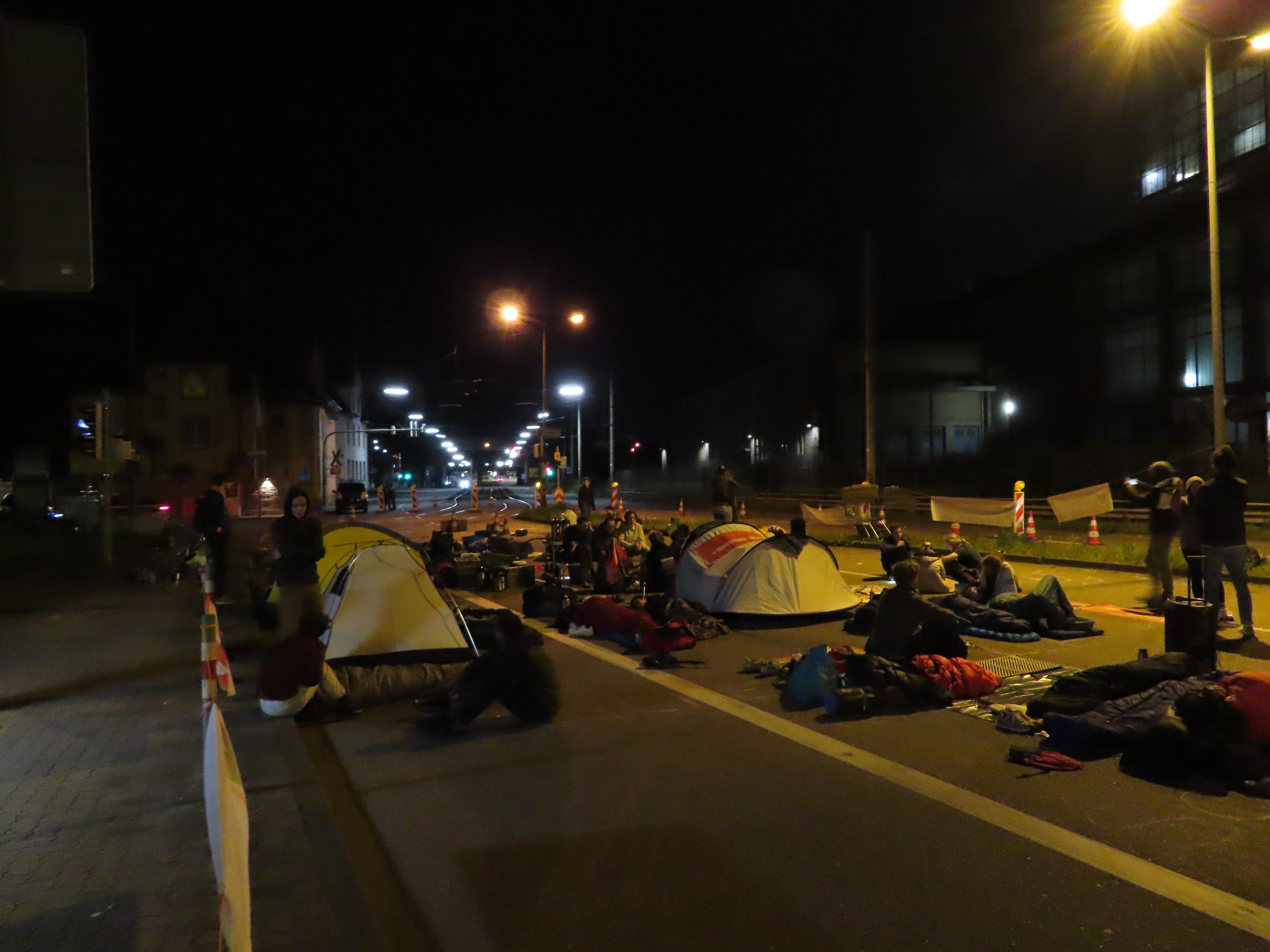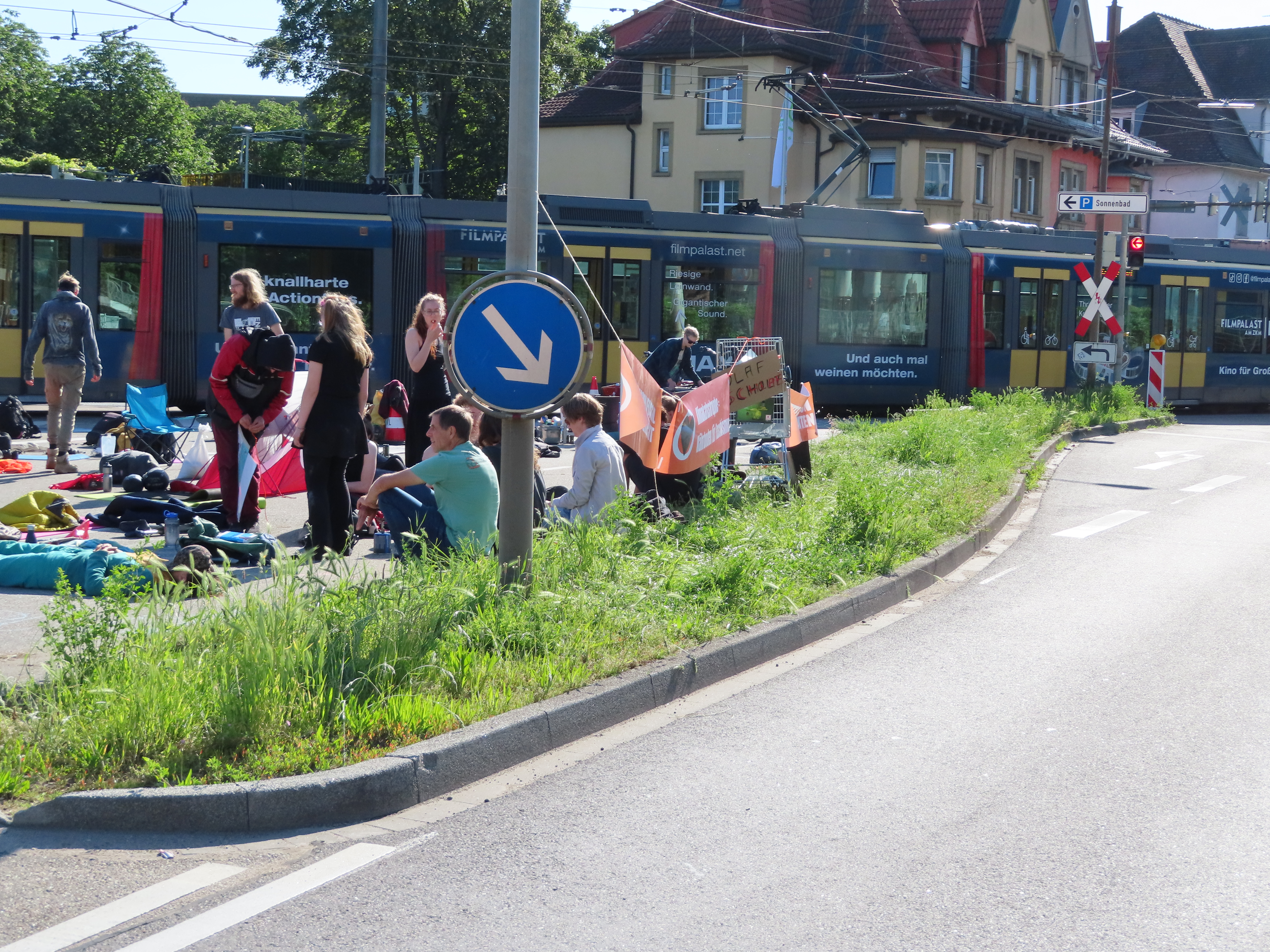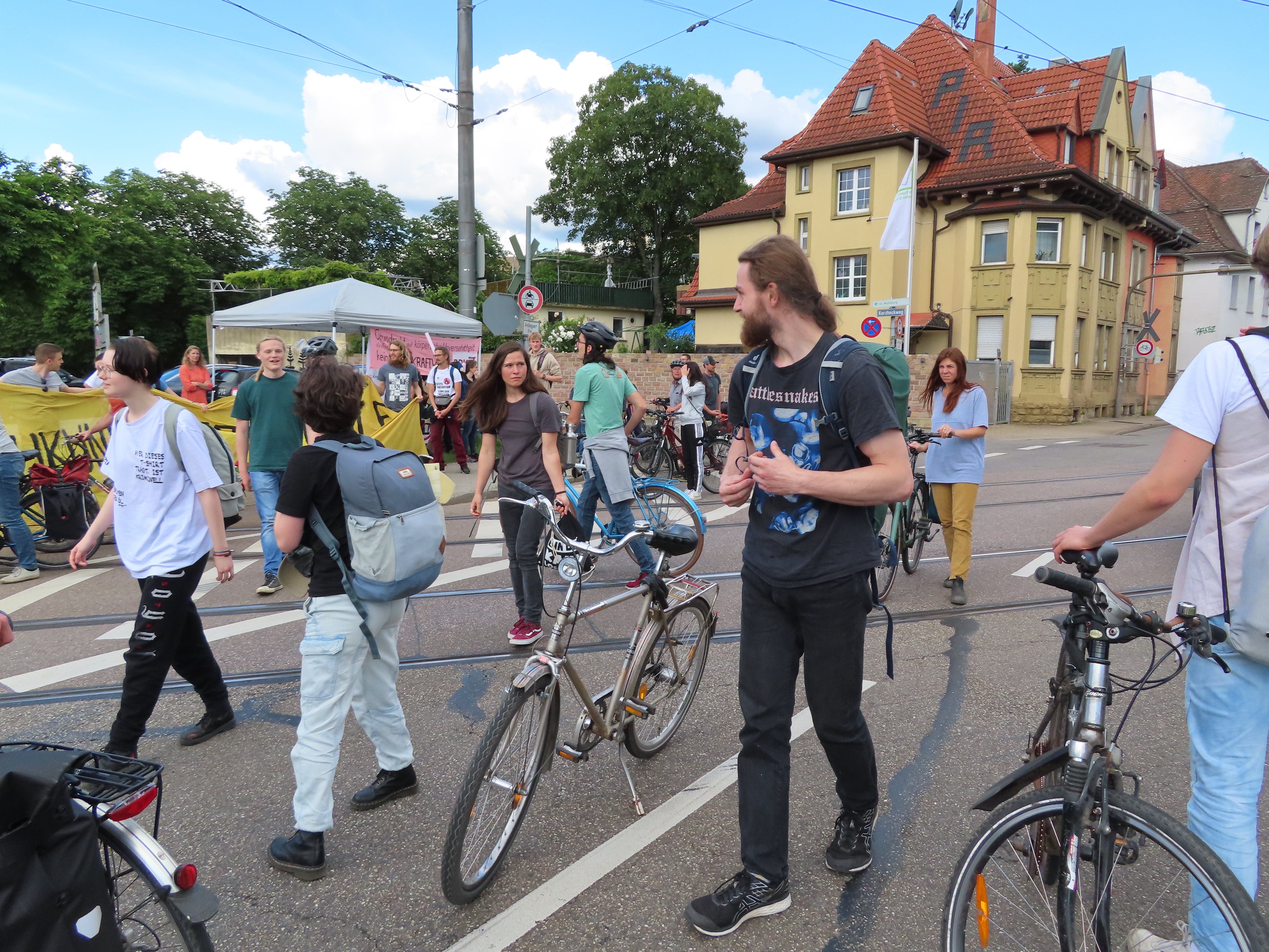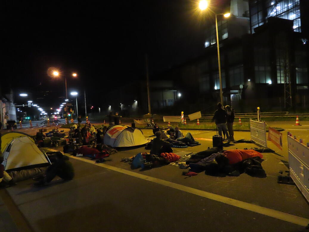 Ungehorsame Versammlung vor dem Heizkraftwerk West in Karlsruhe (Honsellstraße) am 2024-05-25